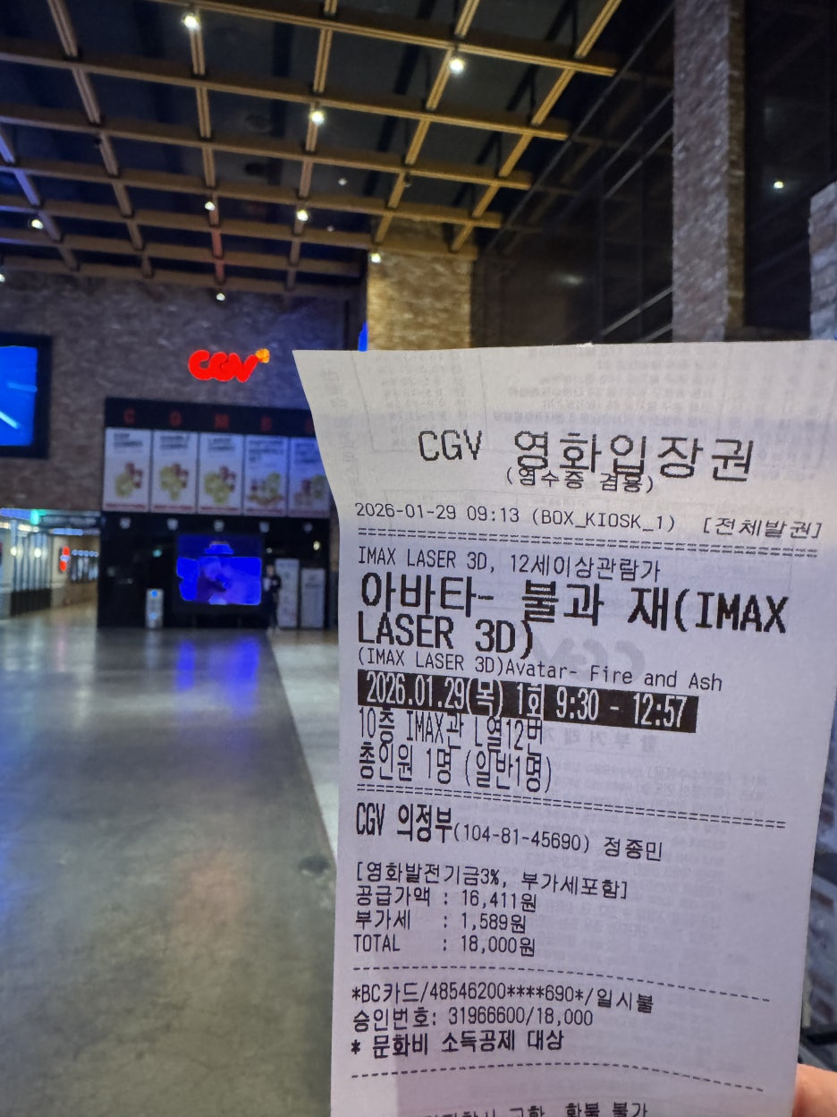 택시타고 신세계백화점 CGV 영화. 아바타 불과재.
